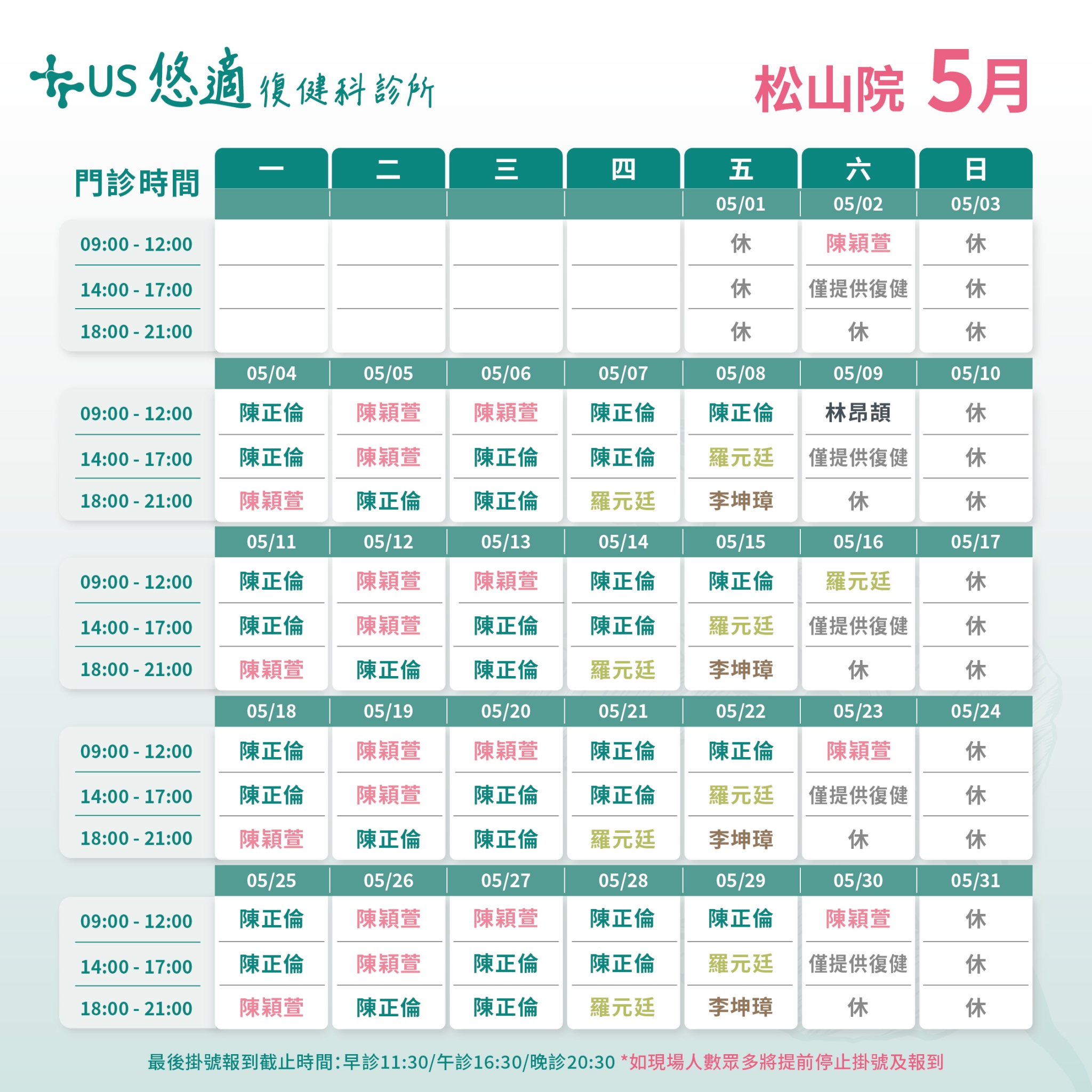 - 復健時間:早上最晚報到時間為11:30|晚上最晚報到時間為20:30