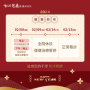 【悠適復健|02/08至02/14 農曆春節休診公告】 1 月 31, 2024/在: All, news /通過: uscare 【悠適復健|02/08至02/14 農曆春節休診公告】 113/02/08(四) 早上|門診、復健正常 下午、晚上|全院休診,復健治療暫停 113/02/08(五)至02/14(三) 農曆春節期間全院休診,復健治療暫停 造成您的不便 敬請見諒 祝大家新年快樂,龍年行大運 ——————————————— #悠適復健科診所 #悠適陪您共創健康優勢 02-27493088 台北市松山區光復北路11巷65號 https://www.uscare.com.tw/ Line 官方帳號選單預約門診 https://lin.ee/l13YNsF https://www.uscare.com.tw/wp-content/uploads/2024/01/24年新年休診公告-02-scaled.jpg 2560 2560 uscare /wp-content/uploads/2018/11/資產-2@3x.png uscare2024-01-31 18:00:482024-01-29 02:23:34【悠適復健|02/08至02/14 農曆春節休診公告】