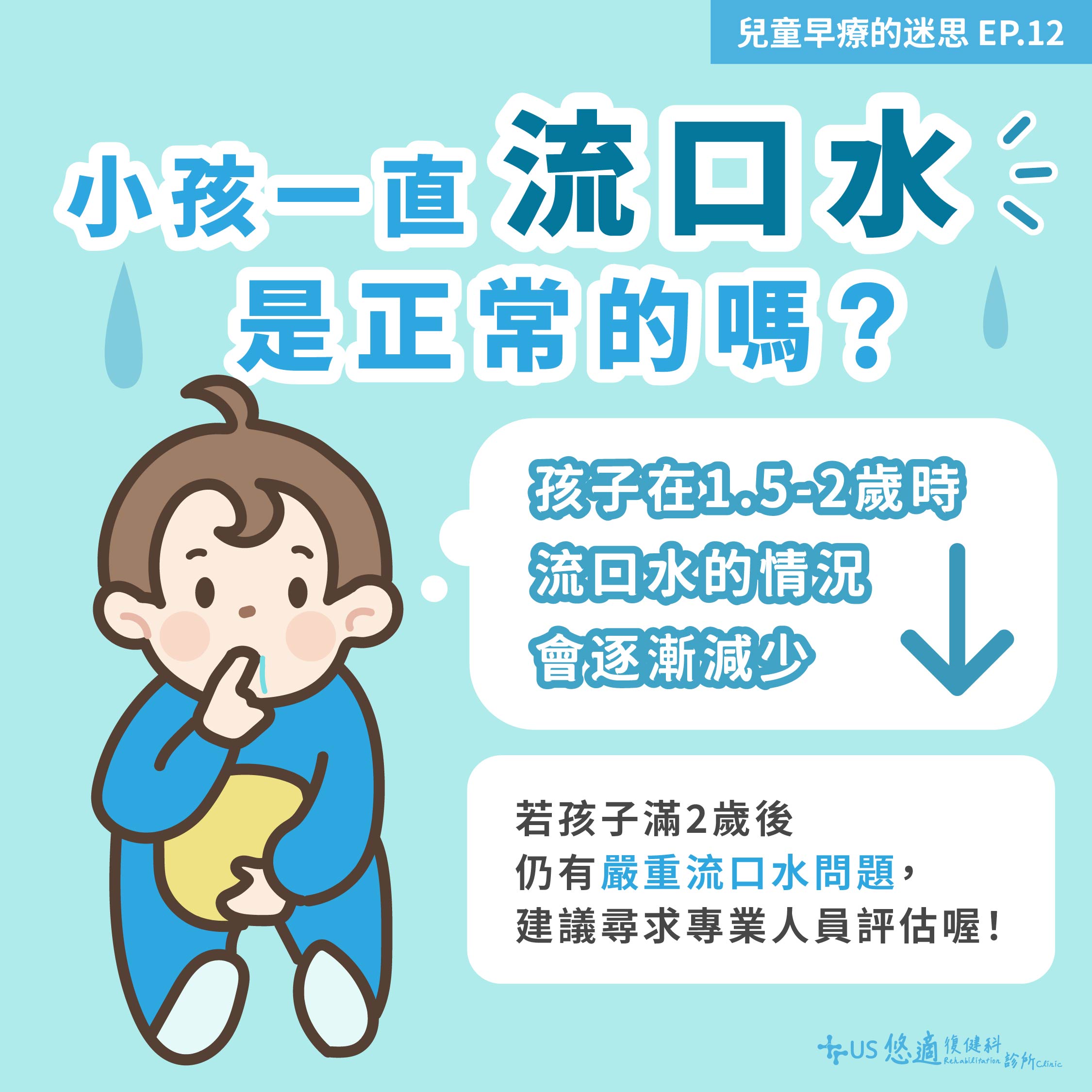 【兒童早療迷思ep.12|小孩一直流口水是正常的嗎🤔❓】 1 月 18, 2023/在: news /通過: uscare小朋友在兩歲前的口腔期裡,唾液會分泌的比較多💧 加上長牙的刺激、加上吃副食品等等的因素 流口水其實是相當正常的現象 很多家長都很擔心自家寶寶如果一直流口水 這樣的情形是否算正常,也很好奇幾歲之後比較不會流口水🤔 👩🏫孩子在1.5-2歲時流口水的情況會逐漸減少 如果孩子滿2歲後,仍然有嚴重流口水問題 建議就要尋求專業人員評估是不是有其他問題喔 ——————————————— #悠適復健科診所 #悠適陪您共創健康優勢 02-27493088 台北市松山區光復北路11巷65號 https://www.uscare.com.tw/ Line 官方帳號選單預約門診 https://lin.ee/l13YNsF https://www.uscare.com.tw/wp-content/uploads/2023/01/1_工作區域-1-複本.jpg 2250 2250 uscare /wp-content/uploads/2018/11/資產-2@3x.png uscare2023-01-18 07:30:002023-03-13 01:49:13【兒童早療迷思ep.12|小孩一直流口水是正常的嗎🤔❓】