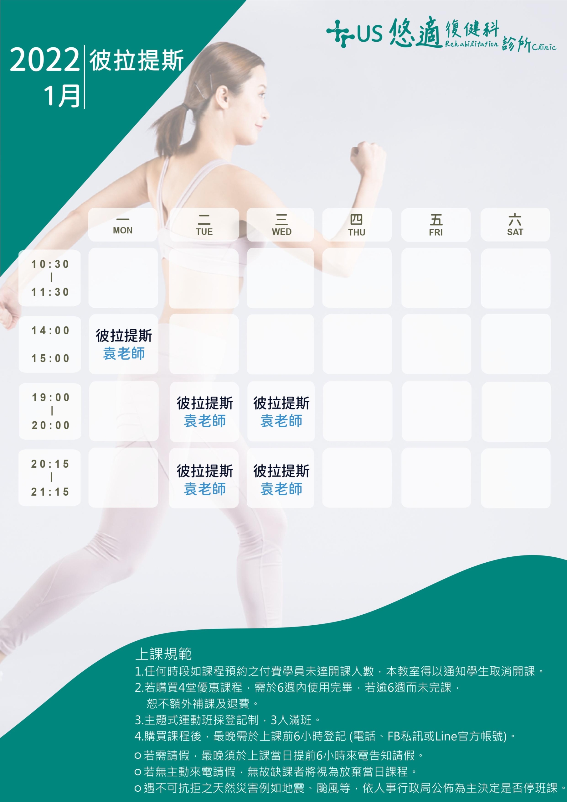 【松山悠適|2022年1月運動課表】 1 月 6, 2022/0 評論/在: news /通過: uscare #皮拉提斯 一對一 一對二 三人精緻班 歡迎揪團報名參加 提醒大家 上課時需全程配戴口罩喔 #pilates ——————————————— #悠適復健科診所 #悠適陪您共創健康優勢 02-27493088 台北市松山區光復北路11巷65號 https://www.uscare.com.tw/ Line 官方帳號選單預約門診 https://lin.ee/l13YNsF https://www.uscare.com.tw/wp-content/uploads/2022/01/51565d3d51f842ac8d5caa79af7415c2-0001-scaled.jpg 2560 1811 uscare /wp-content/uploads/2018/11/資產-2@3x.png uscare2022-01-06 12:08:172022-01-07 03:33:07【松山悠適|2022年1月運動課表】