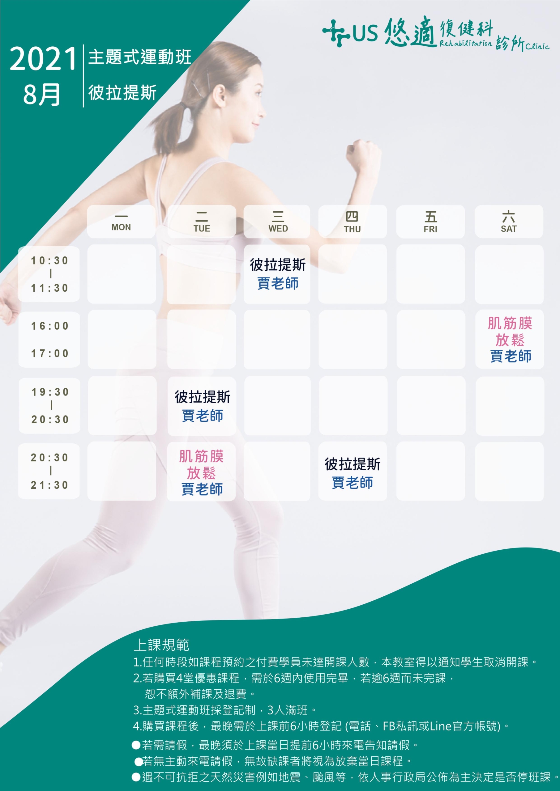 【8月運動課表】 8 月 12, 2021/0 評論/在: news /通過: uscare 【#松山悠適|8月運動課表】 疫情趨緩 運動課也開始恢復上課囉 提醒大家 上課時需全程配戴口罩喔 手刀報名課程 https://lin.ee/l13YNsF #皮拉提斯 #主題式運動班 ——————————————— #悠適復健科診所 #悠適陪您共創健康優勢 02-27493088 台北市松山區光復北路11巷65號 Line 官方帳號選單預約門診 https://lin.ee/l13YNsF https://www.uscare.com.tw/wp-content/uploads/2021/08/28d89e11fc034e68a81fec9c3596a77e-0001-scaled.jpg 2560 1811 uscare /wp-content/uploads/2018/11/資產-2@3x.png uscare2021-08-12 12:31:262021-08-12 12:31:26【8月運動課表】