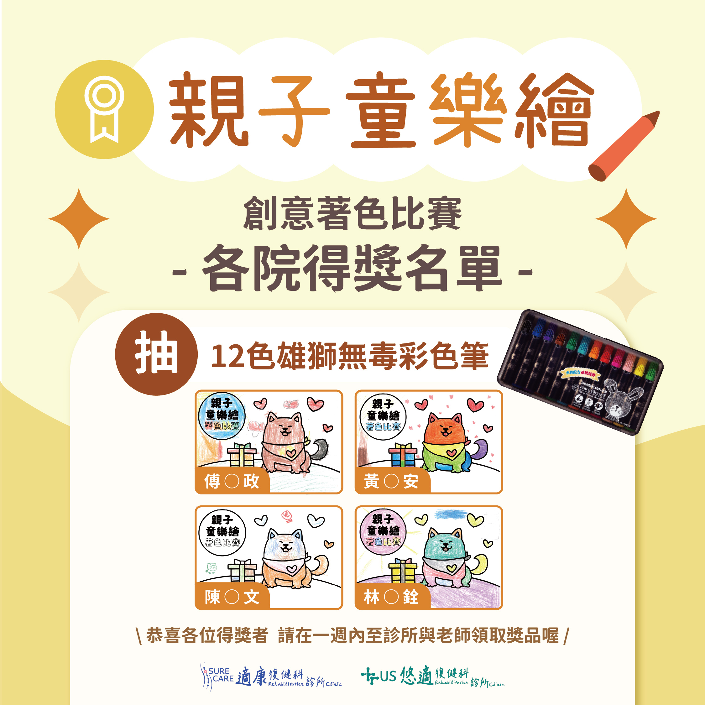 請得獎者一週內至診所與老師領取獎品🎁