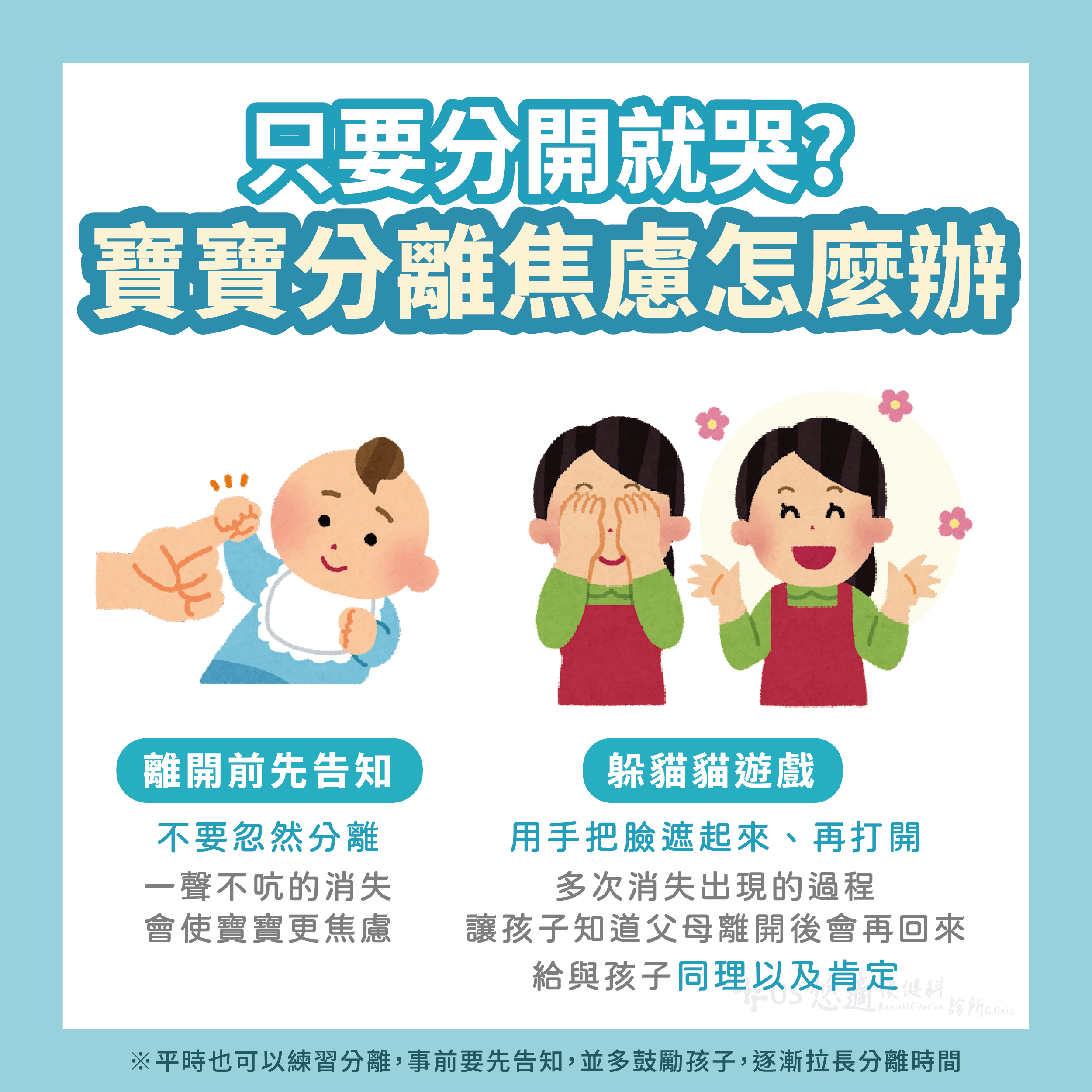 家長可以在離開前事先告知寶寶