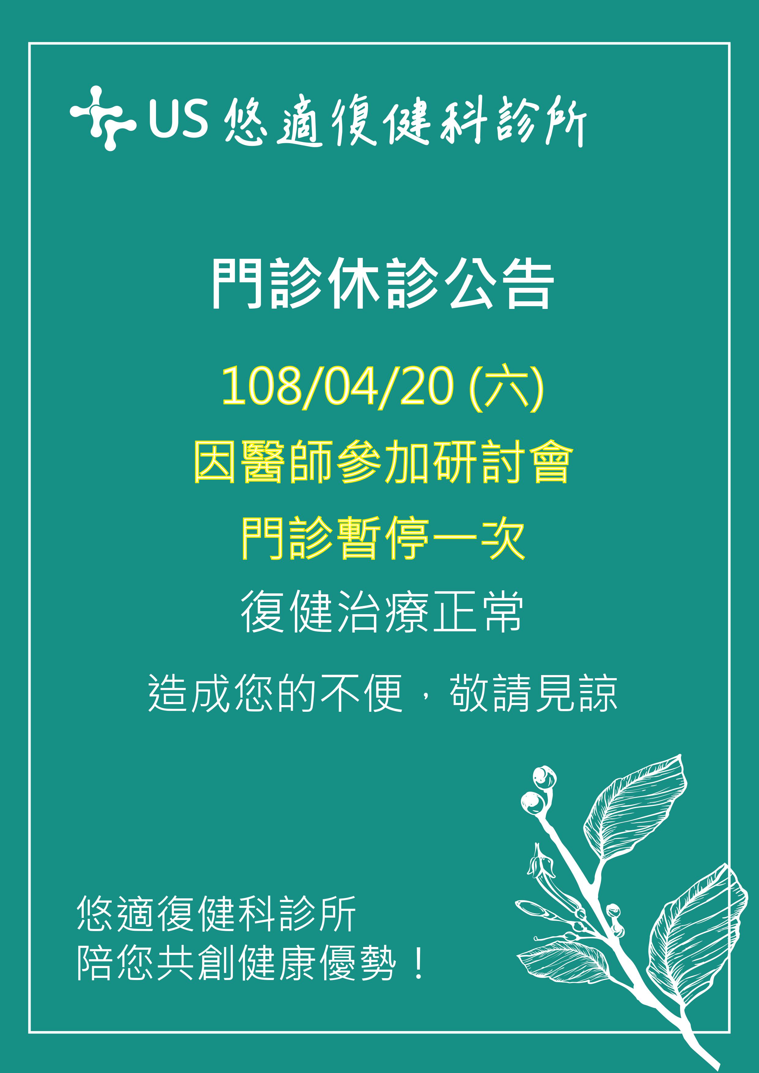 門診休診公告 4 月 14, 2019/在: news /通過: uscare【門診休診公告】 108/04/20 (六) 📌因醫師參加研討會 故門診暫停一次 ✨✨復健治療正常喔✨✨ 造成您的不便,敬請見諒🙇♂️ ☎️02-27493088 🏠台北市松山區光復北路11巷65號 https://www.uscare.com.tw/wp-content/uploads/2019/04/20190420悠適休診公告.jpg 3508 2481 uscare /wp-content/uploads/2018/11/資產-2@3x.png uscare2019-04-14 04:26:082019-05-09 05:12:52門診休診公告